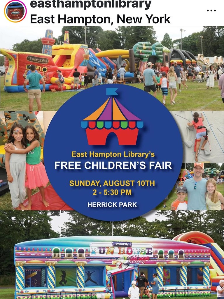 August 1, 2025professorgbg East Hampton Library Children’s Fair Looking forward to meeting all the young readers, their parents, grandparents, and friends! Share this: Click to share on X (Opens in new window) X Click to share on Facebook (Opens in new window) Facebook Like Loading... Related